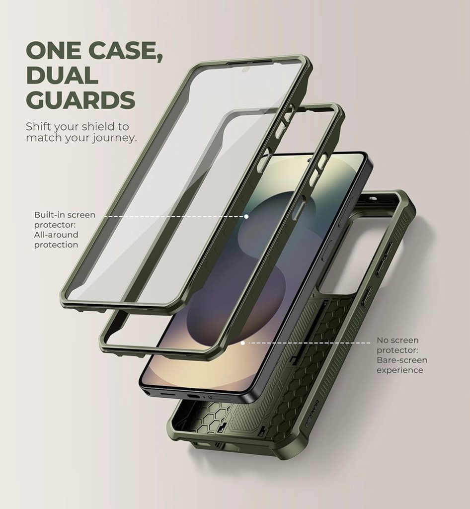 Jedna przednia ramka jest wyposażona w czułą, odporną na zarysowania folię ochronną PET (działa również z Touch ID). Lub jeśli wolisz używać własnej folii ochronnej, włóż ją do drugiej przedniej ramki. Dzięki tym opcjom i dodatkowej ochronie w postaci podniesionych krawędzi utrzymanie wyświetlacza w bezpieczeństwie będzie dziecinnie proste.