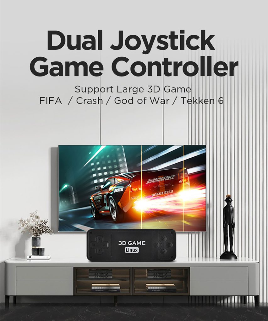 U9 Pro zostało zaprojektowane jako czysto gamingowa konsola, która koncentruje się na prostocie, stabilności i natychmiastowej rozrywce. Podłączasz, bierzesz kontroler do ręki i grasz. Bez instalacji, bez aktualizacji, bez czekania.